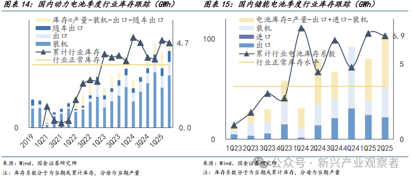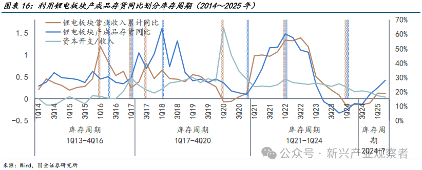 板块所处库存周期阶段:我们在2024年~2025年策略报告中即提到,锂电板块正经历库存周期触底至回升阶段,当前板块自2Q24正式进入复苏阶段,3Q24~2Q25为板块繁荣期,对应库存周期为“被动去库”至“主动补库”阶段。