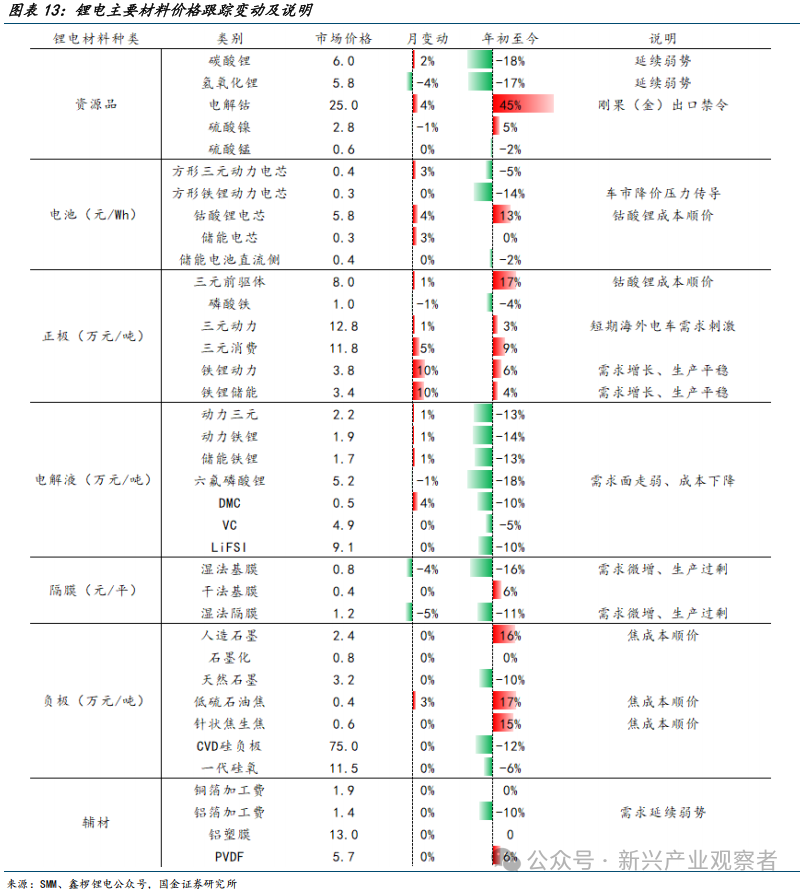 原材料价格上涨风险:若碳酸锂等原材料价格未来上涨,则对部分产业链企业盈利产生影响。
