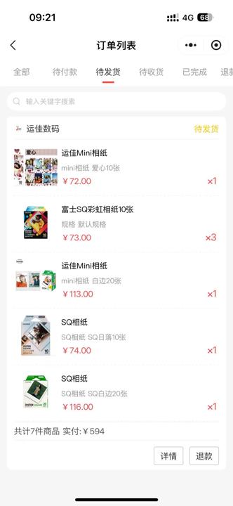 “因为当时相纸价格上涨,这个拼团价格比较便宜,想着等就等了。”多位拍立得爱好者告诉记者,一开始参团的缘由是拍立得相纸和相机产品原价与二级市场的价格差。市民胡女士今年5月从一家叫“运佳数码”的拼团购买了价值594元的拍立得相纸若干。据她介绍,当时正值毕业季,相纸价格上涨,就想着“先囤一些”。以胡女士购买的“mini相纸”为例,20张原价为72元,但当时的市场价达到140元一盒,而“运佳数码”的售价为113元。