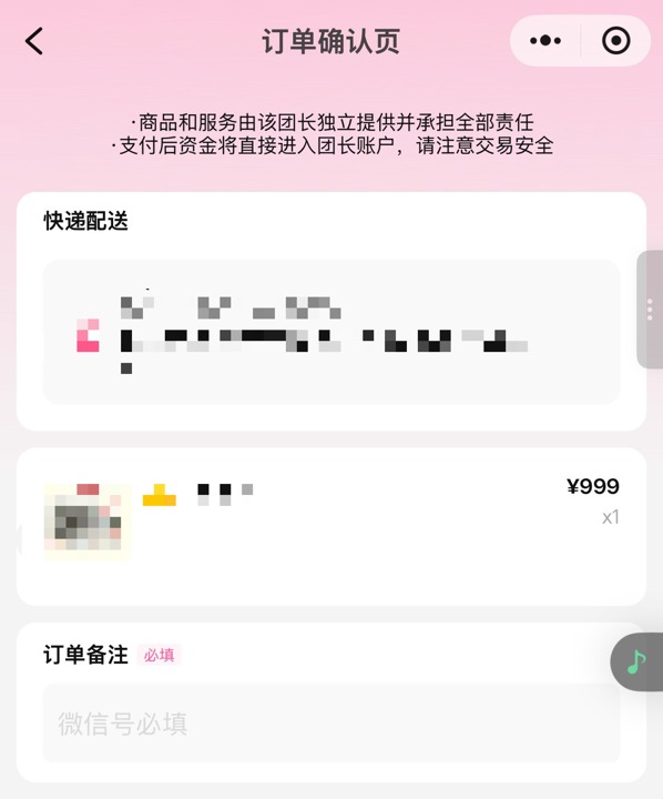 拼团下单页面有风险提示