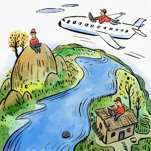 没有固定的办公场所、利用现代信息技术远程办公、具备良好自我管理能力的人群,以年轻人为主。他们多从事软件开发、内容创作、创意设计等创造性工作,在不同地区自由流动,打破了传统职业的地理限制。常选择低成本地区生活,以优化收支结构,实现工作和生活的动态平衡。这种新型的工作、生活方式,正受到全世界越来越多年轻人的青睐。许多国家已推出了针对数字游民的签证政策、税收优惠。近两年来,中国的数字游民也呈现出快速增长的趋势。多地政府出台了相关措施,致力于“打造数字游民栖息地”,建设“数字游民社区”,以期吸引他们参与到乡村振兴、城市建设等工作中。数字游民的兴起,反映了就业形态的时代变迁。